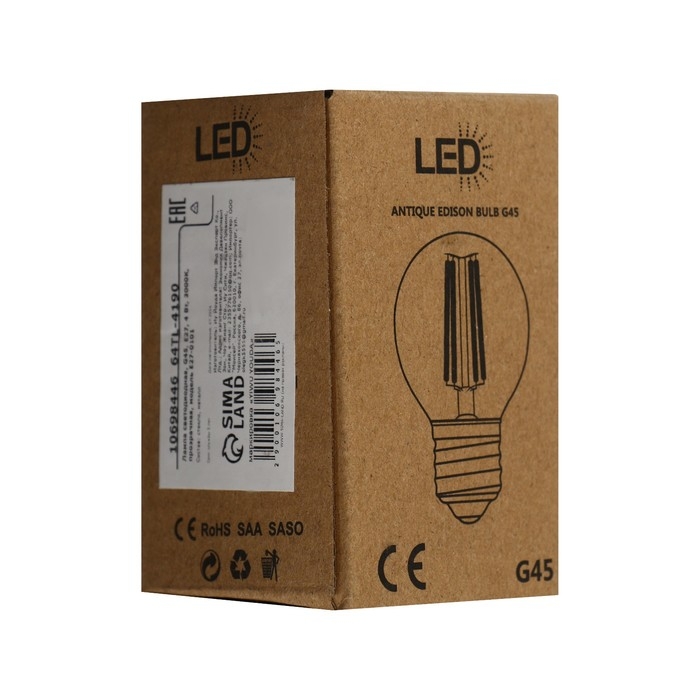 Лампа светодиодная, G45, Е27, 4 Вт, 3000К, 220 В, прозрачная