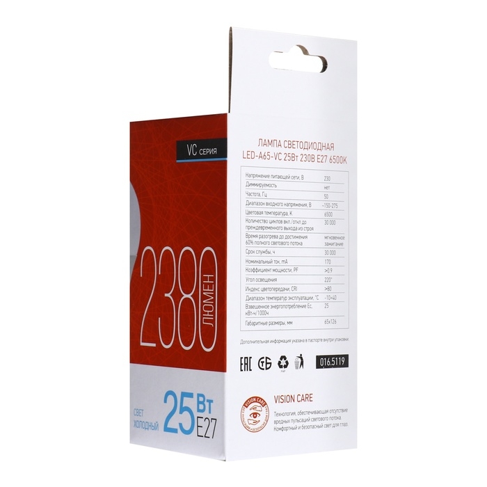 Лампа светодиодная IN HOME LED-A65-VC, 25 Вт, 230 В, Е27, 6500 К, 2380 Лм