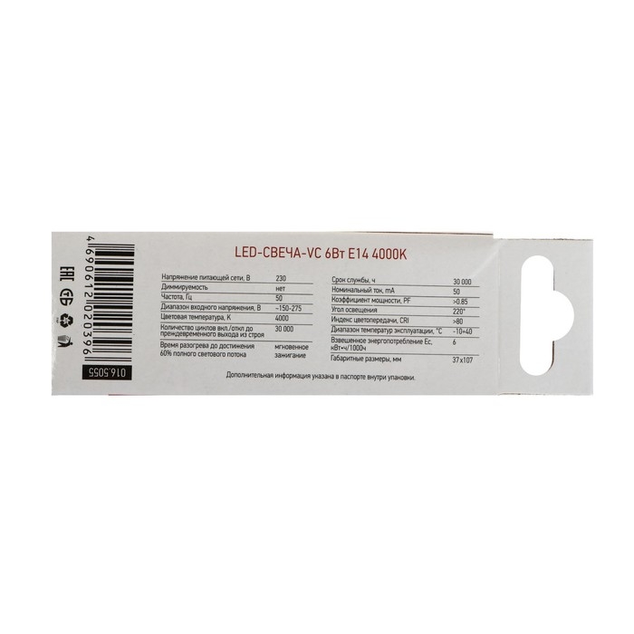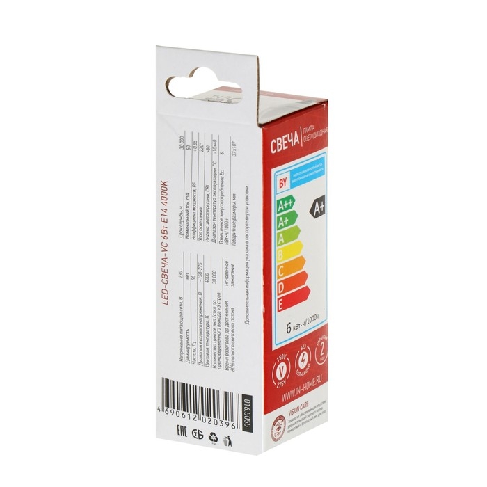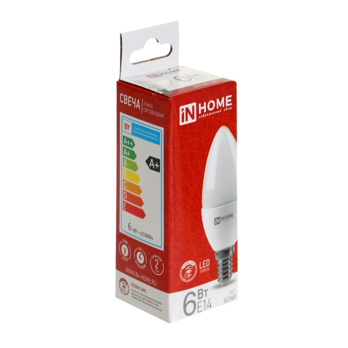 Лампа светодиодная IN HOME LED-СВЕЧА-VC, Е14, 6 Вт, 230 В, 4000 К, 570 Лм