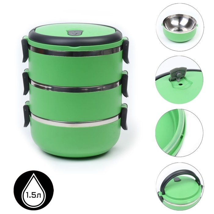 Ланч-бокс "Доляна", 1.5 л, 3 тарелки, сохраняет тепло 3 ч, 16 х 19 см, салатовый
