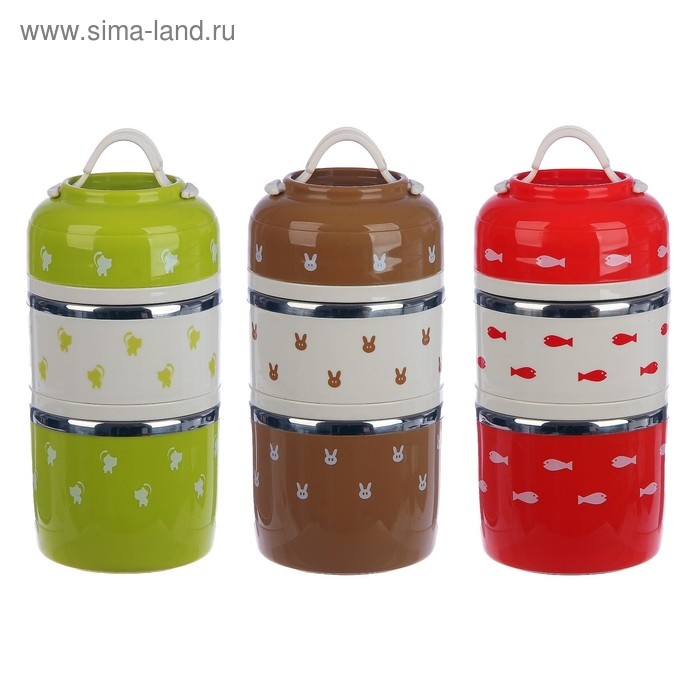 Ланч бокс с отделениями большие, контейнер для еды "Милави", 1.5 л, 3 уровня, емкость 500 мл, сохран