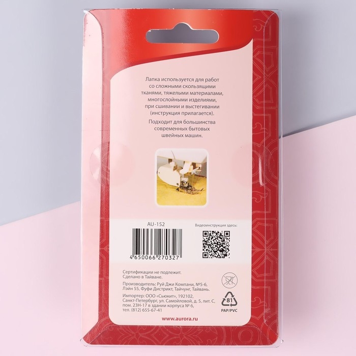 Лапка для швейных машин, для вшивания потайной молнии, 2,4 × 1,6 см
