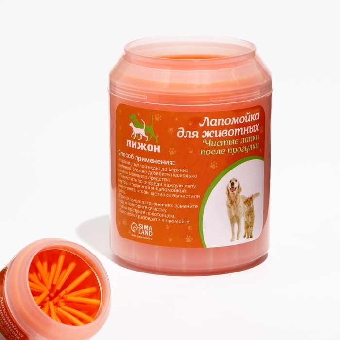 Лапомойка - идеальное приспособление для легкого быстрого и комфортного мытья лап вашего питомца! Силиконовая щетка для мытья лап подходит для кошек,собак и других животных среднего размера. Переносной стакан для мытья лап,благодаря множеству мягких силиконовых щетинок,без особого труда удалит пыль,грязь,песок, глину и другие виды загрязнений, а ваш пол останется таким же чистым,как и до прогулки!
