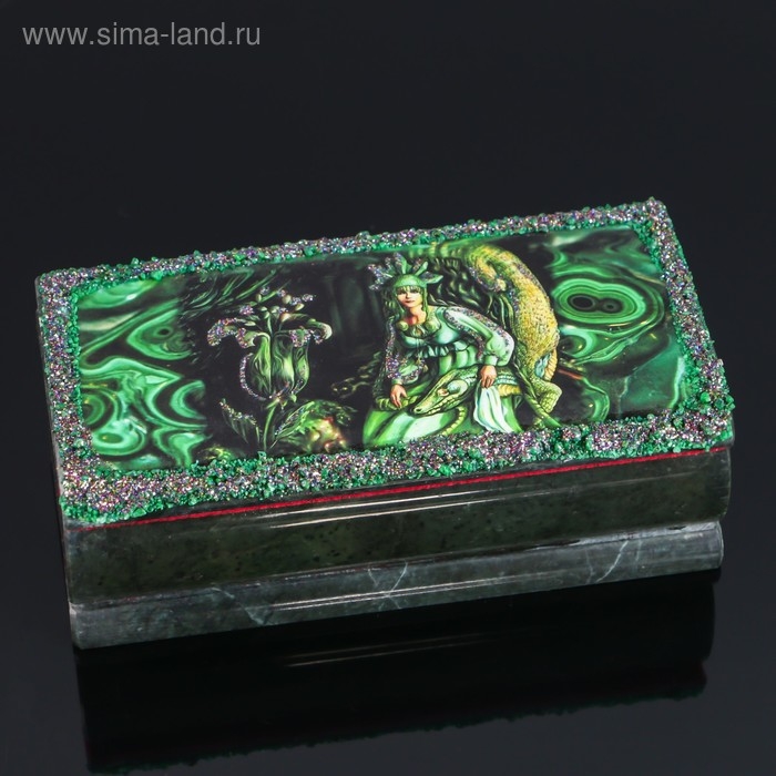 Ларец "Хозяйка медной горы" 15х7х5,5 см, натуральный камень, змеевик