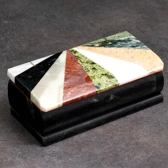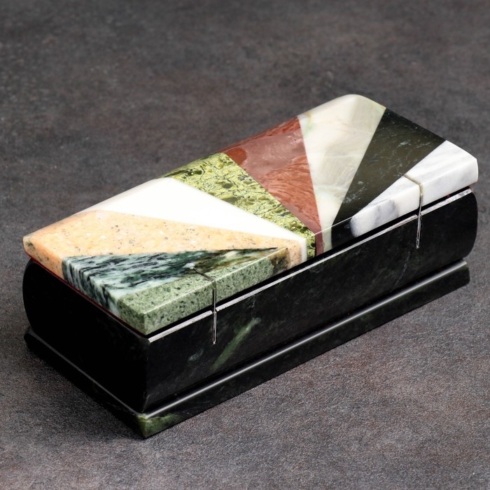 Ларец "Мозайка" 15х7х5,5 см, змеевик, креноид, лемезит, офиокальцит, мрамор