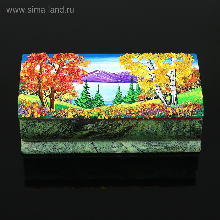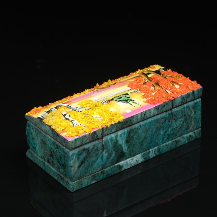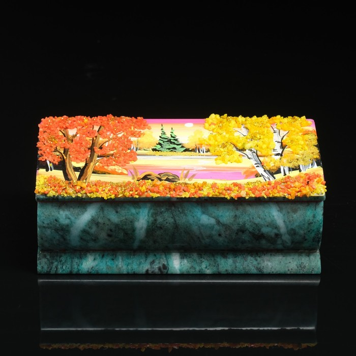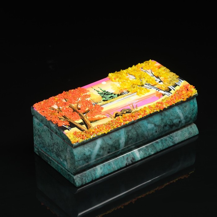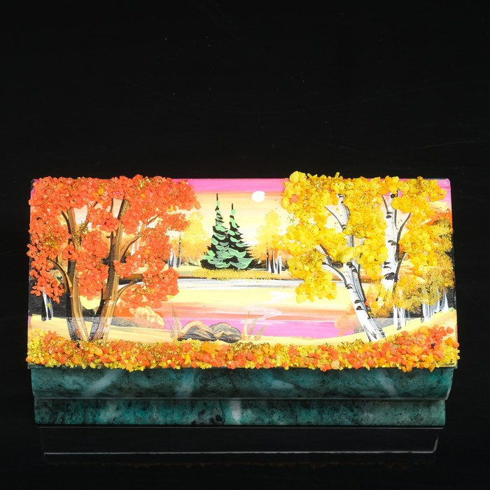 Шкатулка с пейзажем "Осень", каменная крошка, змеевик МИКС