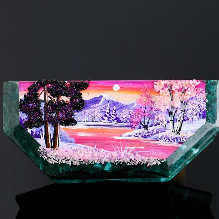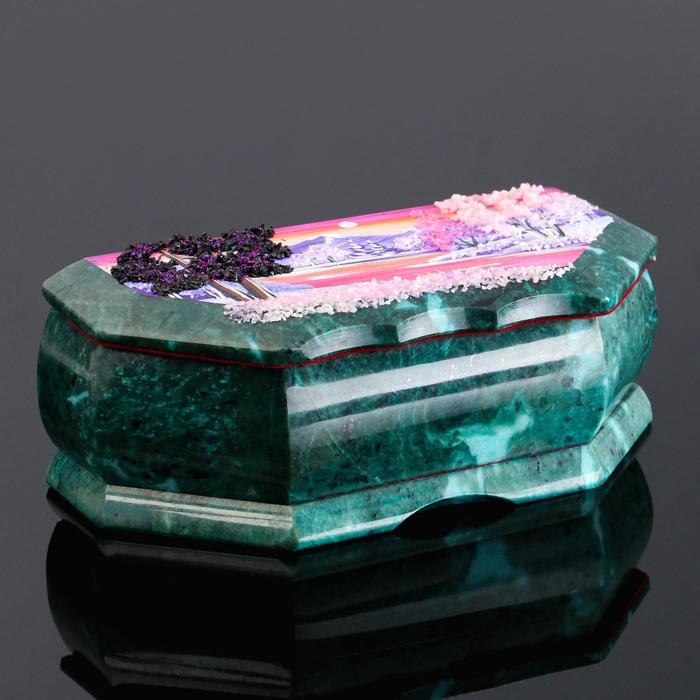 Шкатулка с пейзажем "Осень", каменная крошка, змеевик МИКС