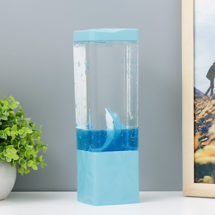 Лава-лампа "Дельфин" LED от батареек, аквариум 3хАА USB синий 7,5х7,5х23см RISALUX