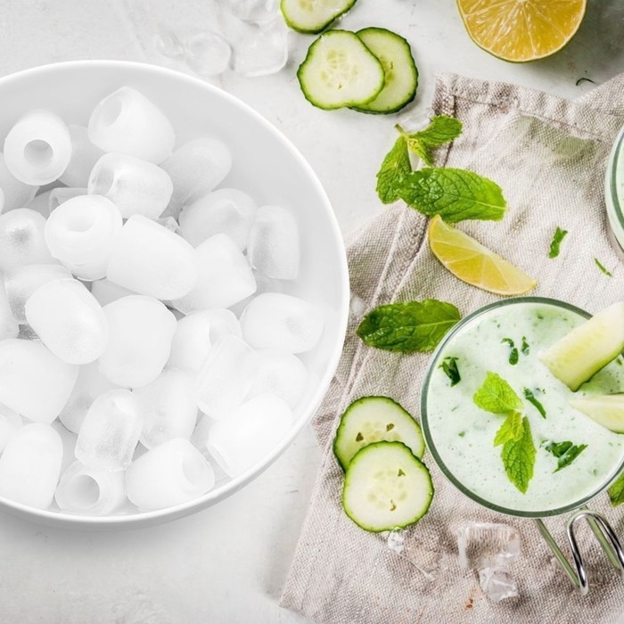 Из-за оригинальной технологии приготовления лёд получается в виде напёрстков. Толщина у них небольшая, поэтому лёд легко измельчается блендером. Напёрстки компактно помещаются в стакане, при этом хорошо пропуская жидкость, которую надо охладить.