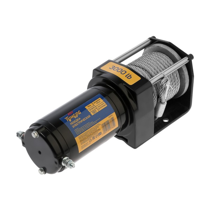 Лебедка электрическая ТУНДРА, 12/24V, 3000 lb (1.4 т), 1.2 л.с., до 3.3 м/мин, 4.8 мм х 12 м