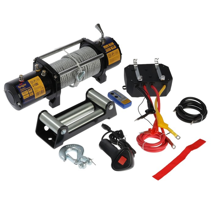 Лебедка электрическая ТУНДРА, 12/24V, 2000 lb (0.9 т), 1 л.с., до 3.2 м/мин, 4.8 мм х 12 м