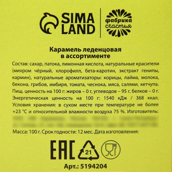 Состав: сахар, патока, пищевой ароматизатор, пищевые красители.