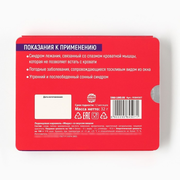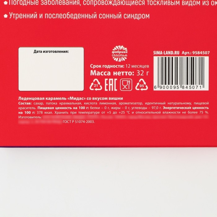 Состав: сахар, патока крахмальная, кислота лимонная, ароматизатор, идентичный натуральному, пищевой краситель.
