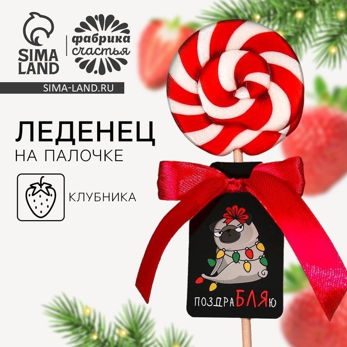 Леденец на палочке «Мопс»: со вкусом клубники, 15 г