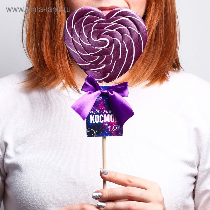 Леденец XXL на палочке «Ты мой космос»: сердце, ежевика, 120 г.