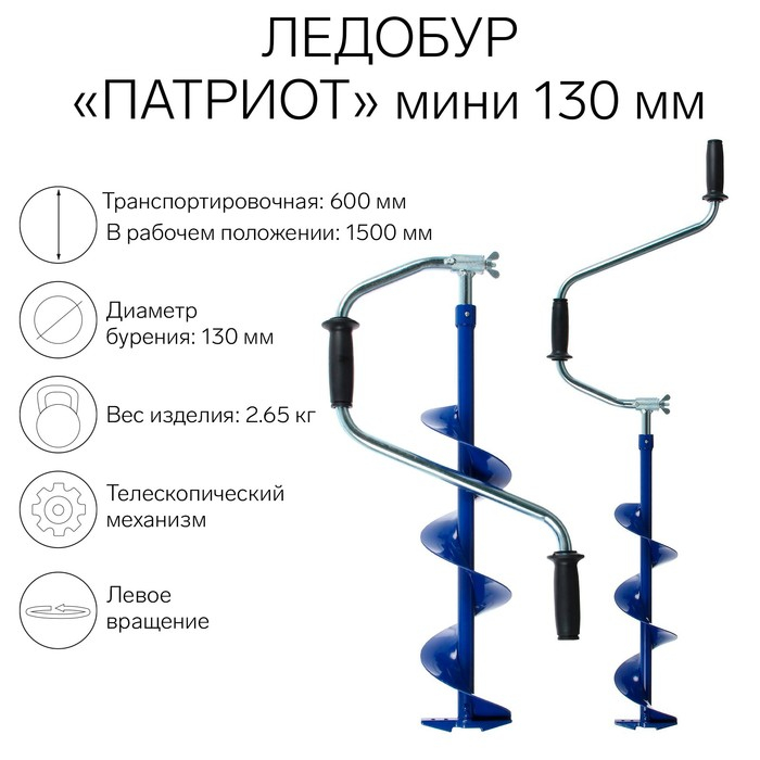 Ледобур «Патриот» — это инструмент, предназначенный для создания отверстий во льду для зимней рыбалки. Он изготовлен из высококачественной стали, что обеспечивает его прочность и долговечность. Ледобур оснащен острыми ножами, которые легко справляются с любым типом льда. Благодаря компактным размерам и малому весу, его удобно транспортировать и хранить.
