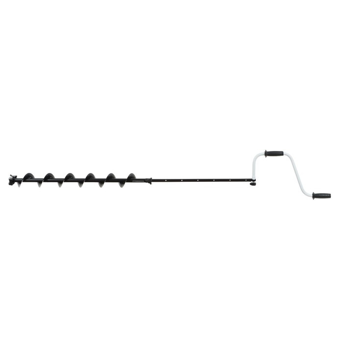 Верхняя рукоятка ледобура смещена относительно оси ледобура на 101 мм, а нижняя на 169 мм. Такое расположение рукояток позволяет вращать ледобур одновременно двумя руками, тем самым увеличивая скорость бурения лунок во льду. Телескопическая вставка-удлинитель позволяет комфортно бурить лёд, подстраивая ледобур под рост рыболова. Возможно ступенчато увеличивать глубину бурения почти до полутора метров. Штанга-удлинитель покрашена полимерной порошковой краской.