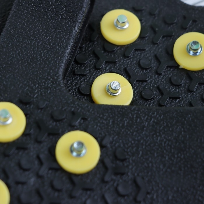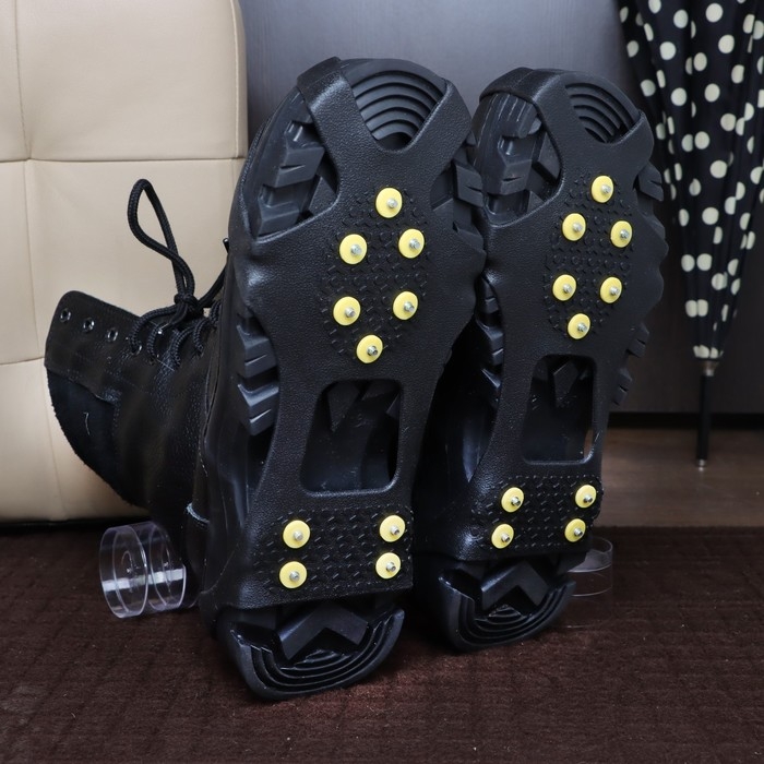 - Шипы в ледоходах для обуви прочно закреплены, но не приварены, а зафиксированы в резиновых гнёздах. Поэтому при ходьбе соблюдайте разумную осторожность. Не бейте обувью в ледоступах по бетонным ступеням, камням или металлическим решёткам, иначе 1–2 шипа могут выпасть.