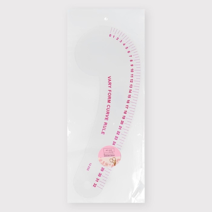 Лекало портновское метрическое фигурное, 30,5 × 11,5 см, толщина 0,5 мм, цвет прозрачный