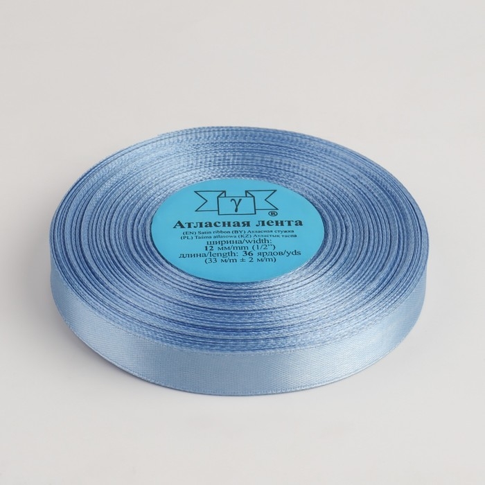 Лента атласная, 12 мм × 33 ± 2 м, цвет голубой №049