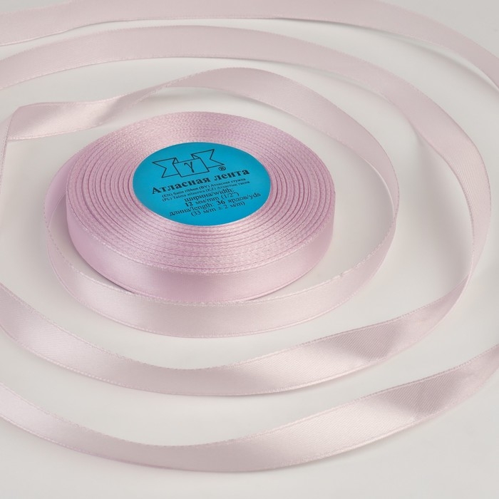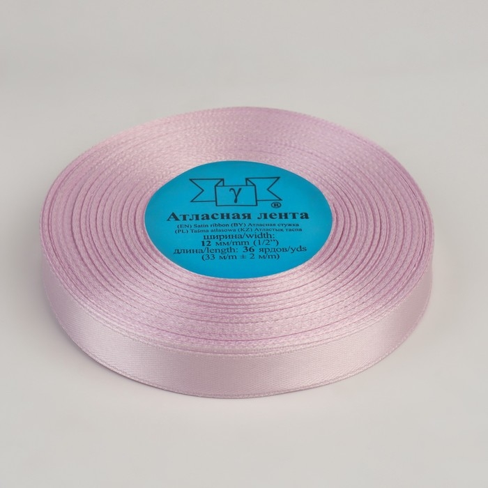 Лента атласная, 12 мм × 33 ± 2 м, цвет сиреневый