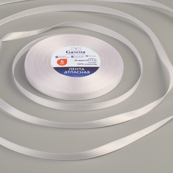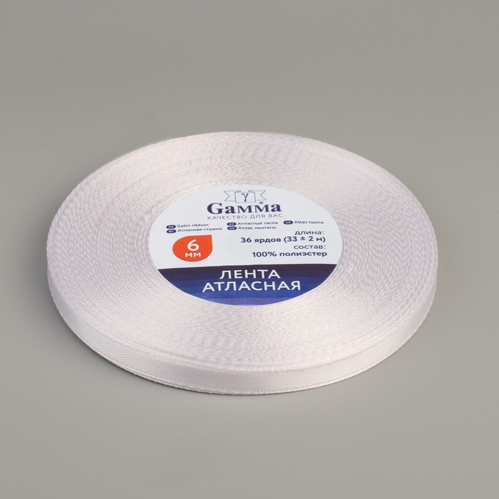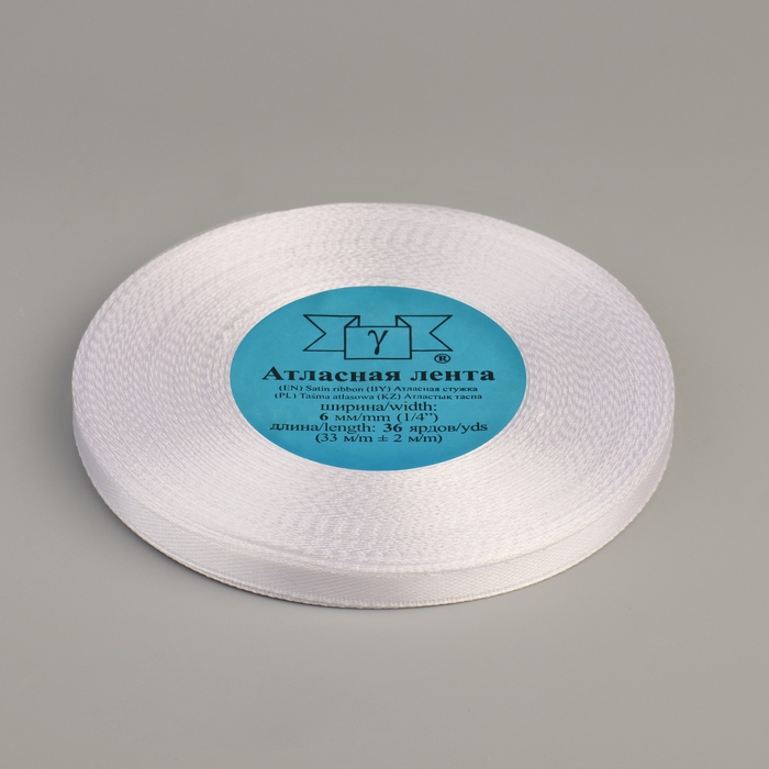 Лента атласная, 6 мм × 33 ± 2 м, цвет белый №001