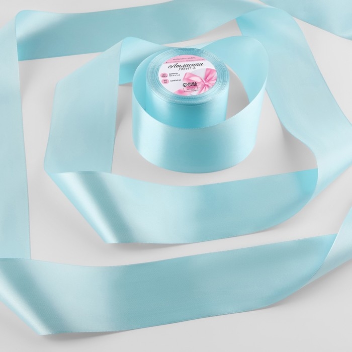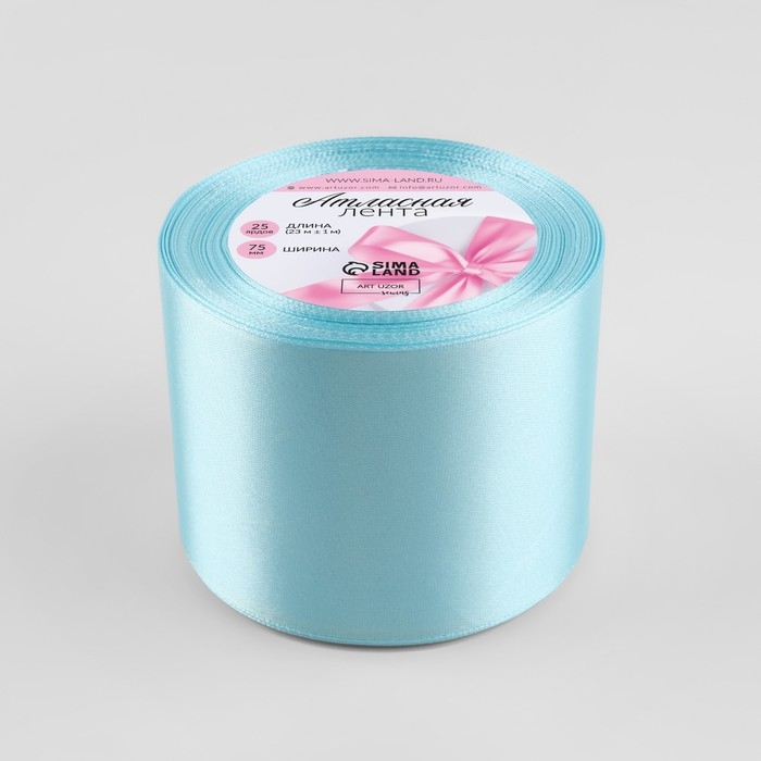 Лента атласная, 75 мм × 23 ± 1 м, цвет голубой №211