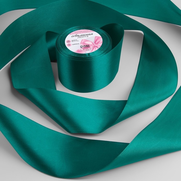 Лента атласная, 75 мм × 23 ± 1 м, цвет изумрудный №126