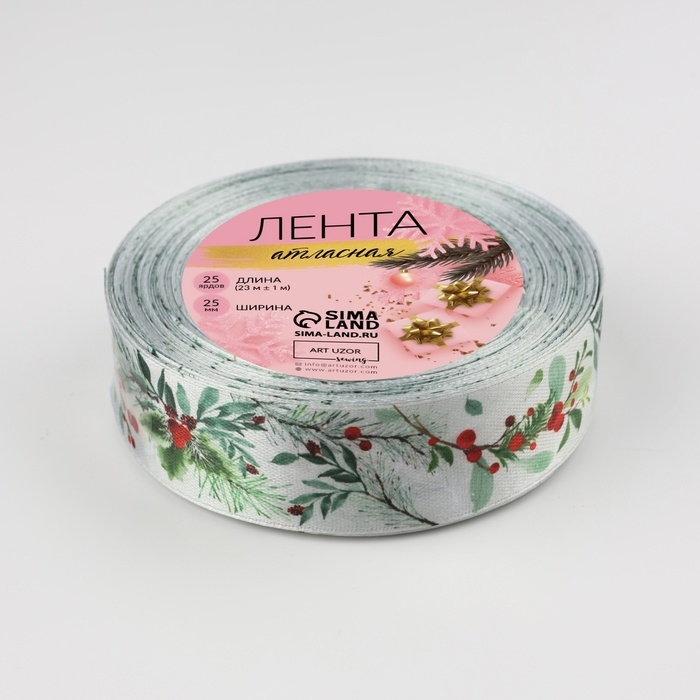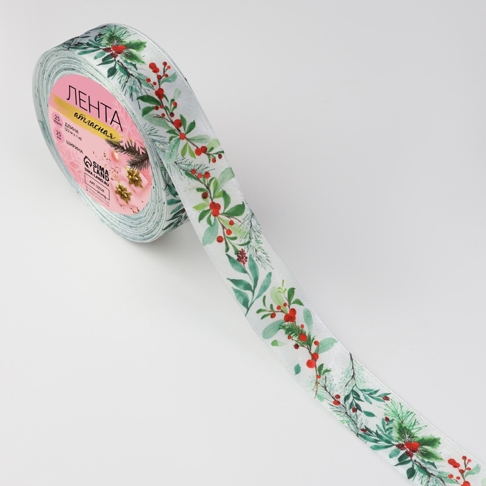 Лента атласная «Рождественский венок», 25 мм, 23 ± 1 м