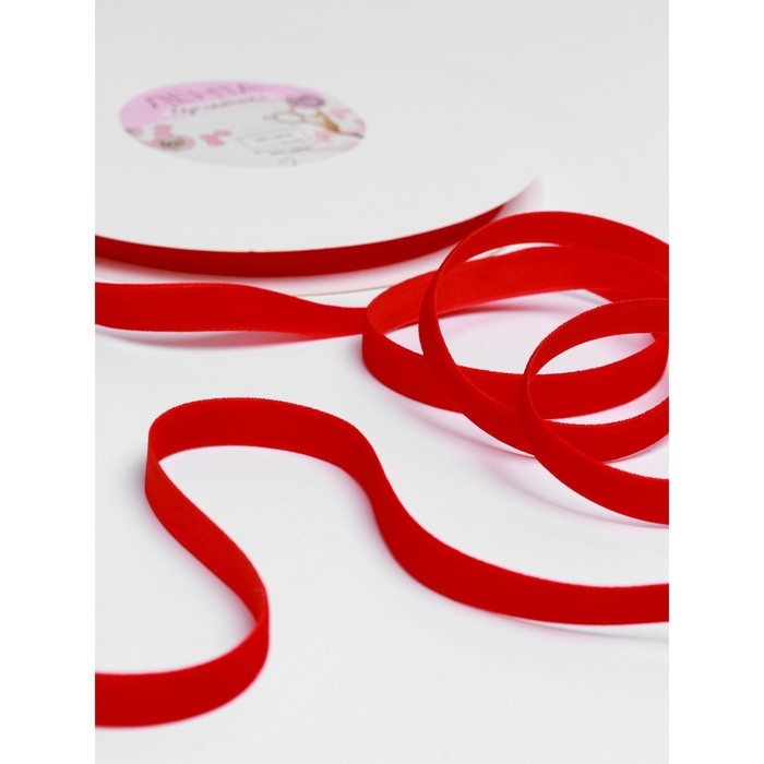 Лента бархатная, 10 мм, 18 ± 1 м, цвет красный №40