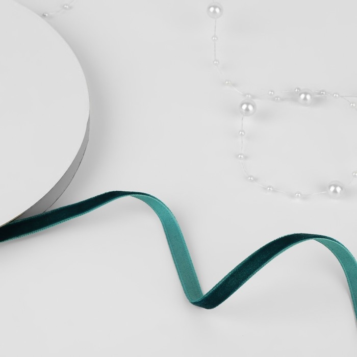 Лента бархатная, 6 мм, 18 ± 1 м, цвет изумрудный №34