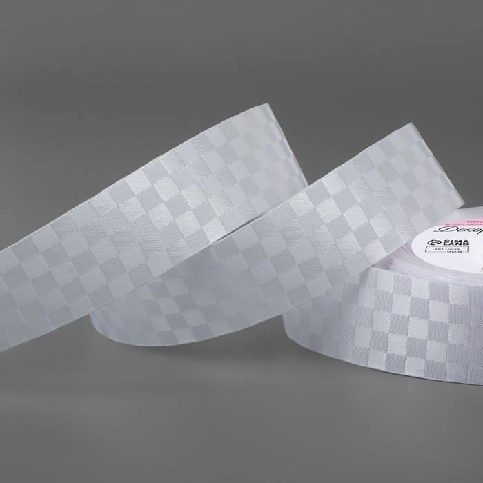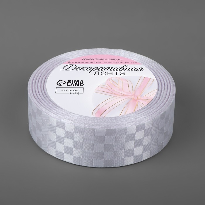 Лента декоративная «Квадраты», 25 мм × 9,1 ± 0,5 м, цвет белый