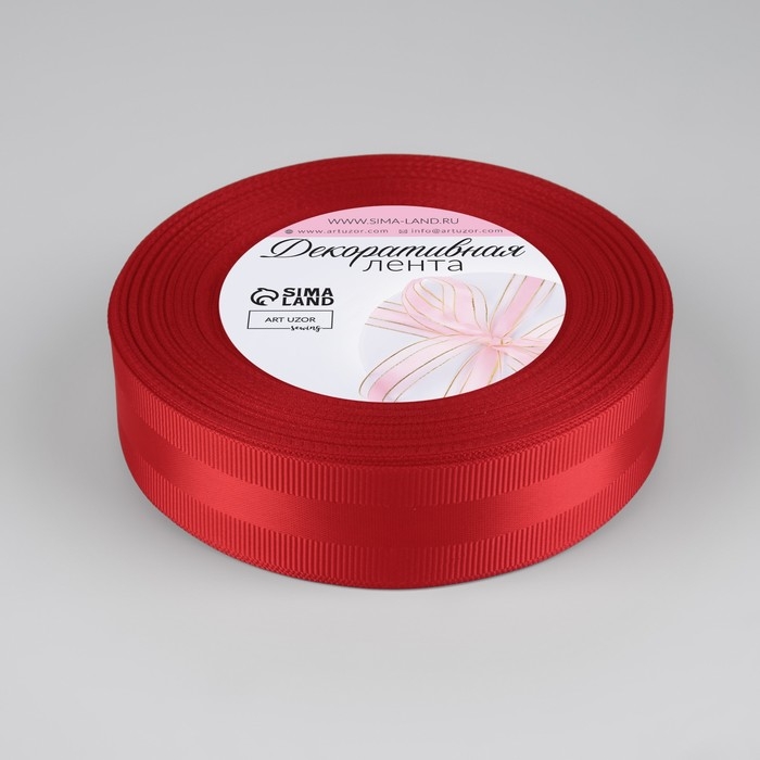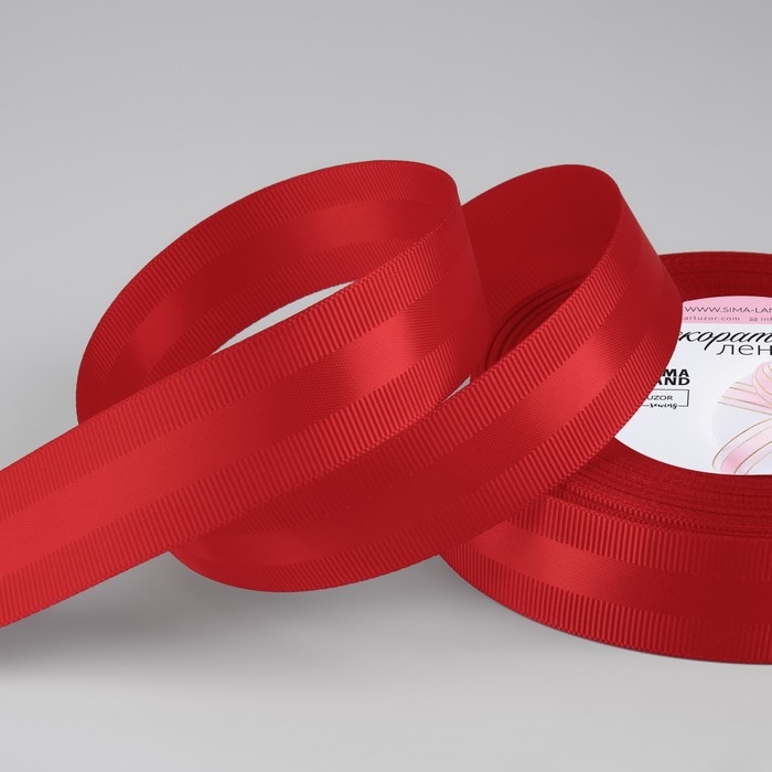 Лента декоративная, репсовая/атласная, 25 мм, 18 ± 1 м, цвет красный