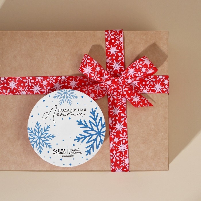 Лента декоративная репсовая «Белые снежинки», красная, 2 см × 5 м