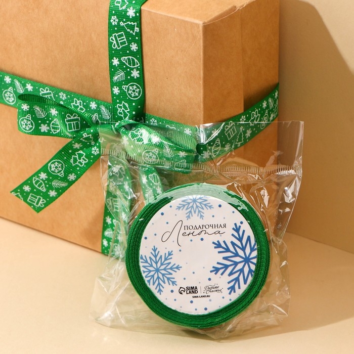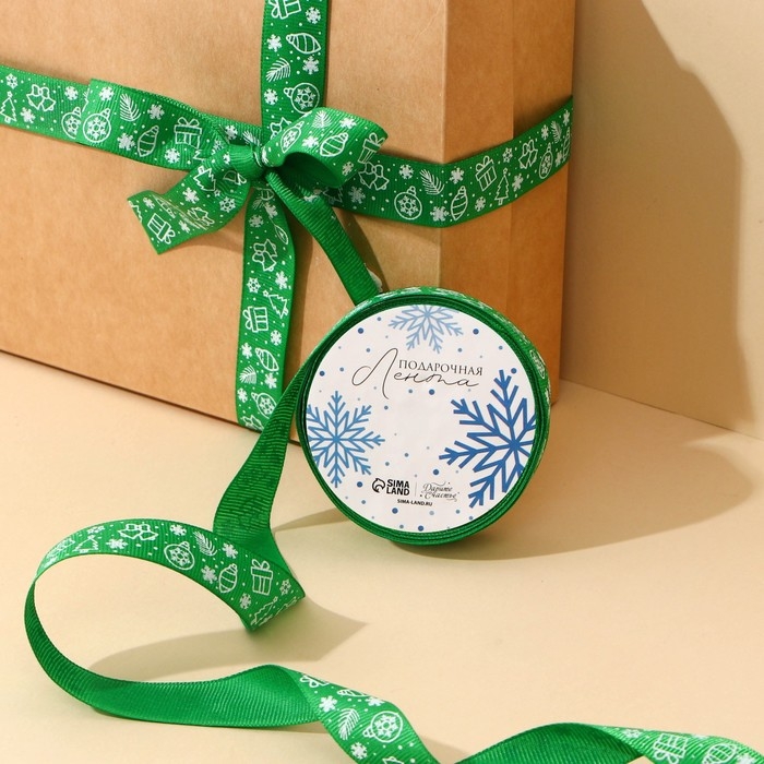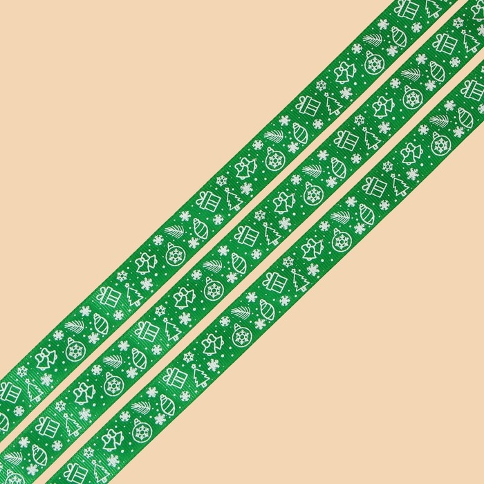 Лента декоративная репсовая «Новогодние игрушки», зеленая, 2 см × 5 м
