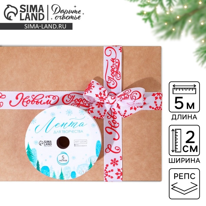 Лента декоративная репсовая «С Новым годом!», 2 см × 5 м