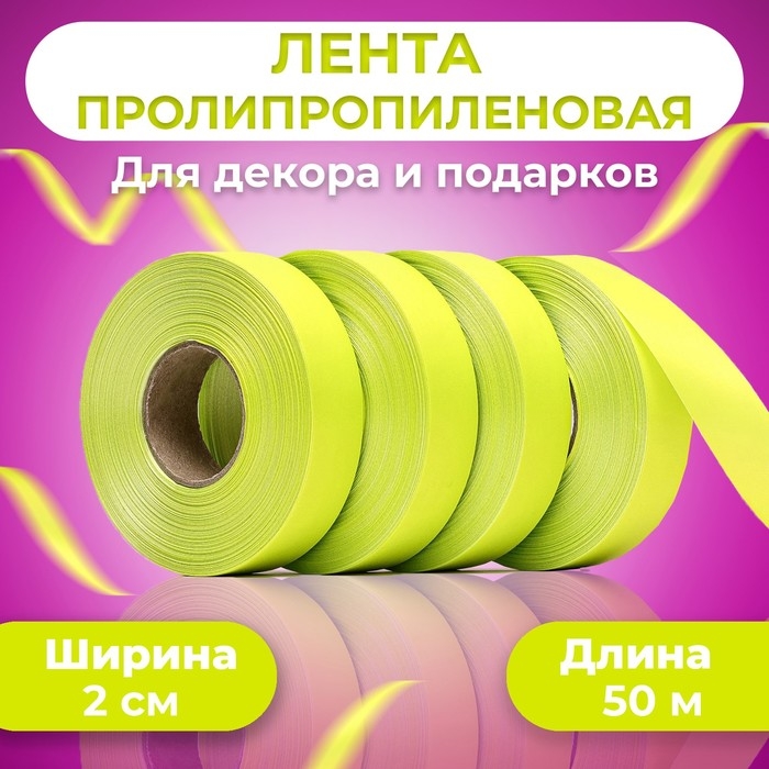 Лента полипропиленовая "Matte" для декора и подарков, лимонная, 2 см х 50 м