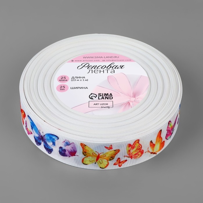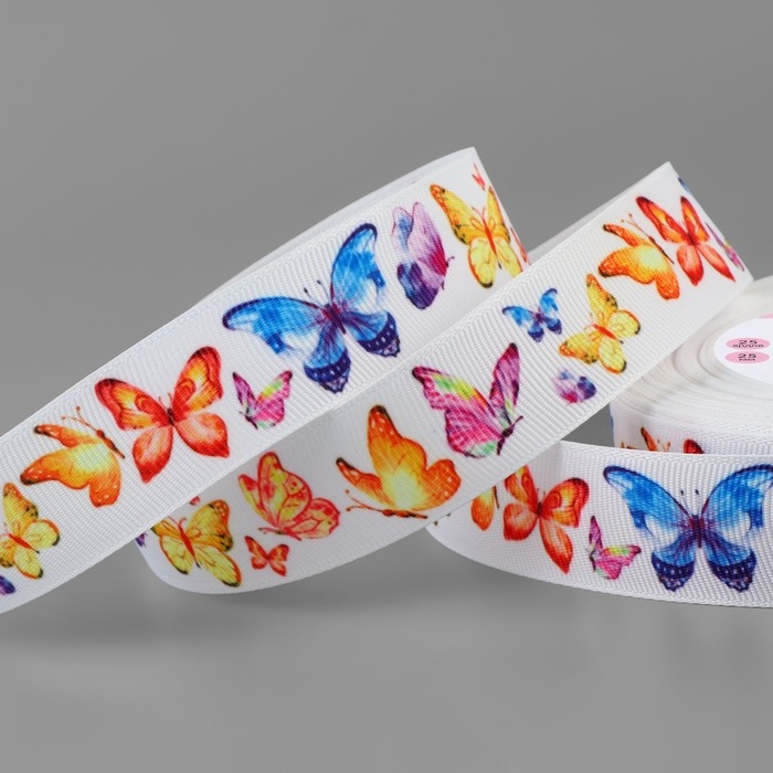 Лента репсовая «Цветные бабочки», 25 мм, 23 ± 1 м, разноцветная