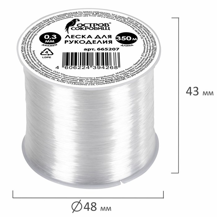 Леска для рукоделия, диаметр 0,3 мм, длина 350 м, прозрачная