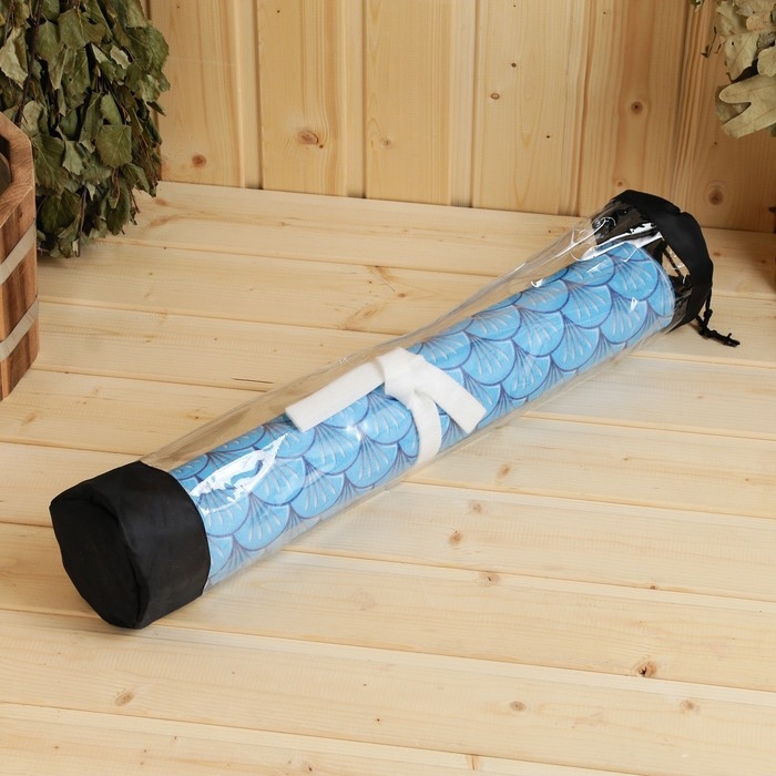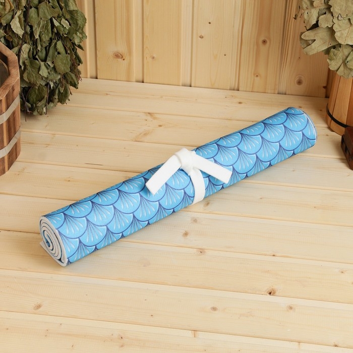 Лежак для бани с принтом "Водяной дракон" в чехле, 50х150см, голубой