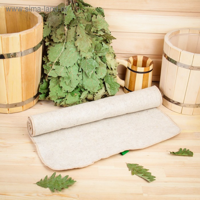 Лежак для бани светлый с вышивкой "С лёгким паром" 150х50см