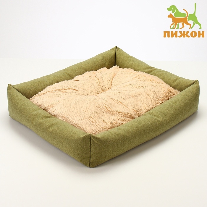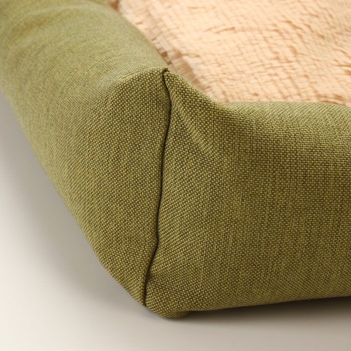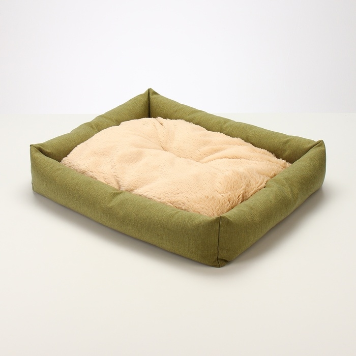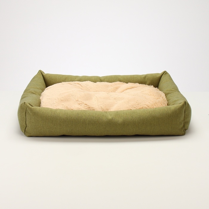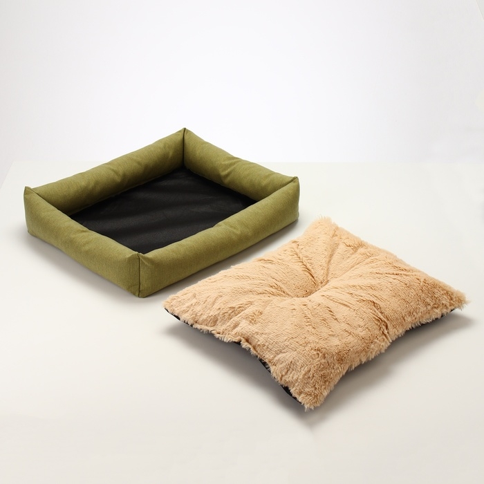 Лежанка для животных, 60*50*15 см, рогожка, синтепон, искусс. Мех, ЗЕЛЕНАЯ
