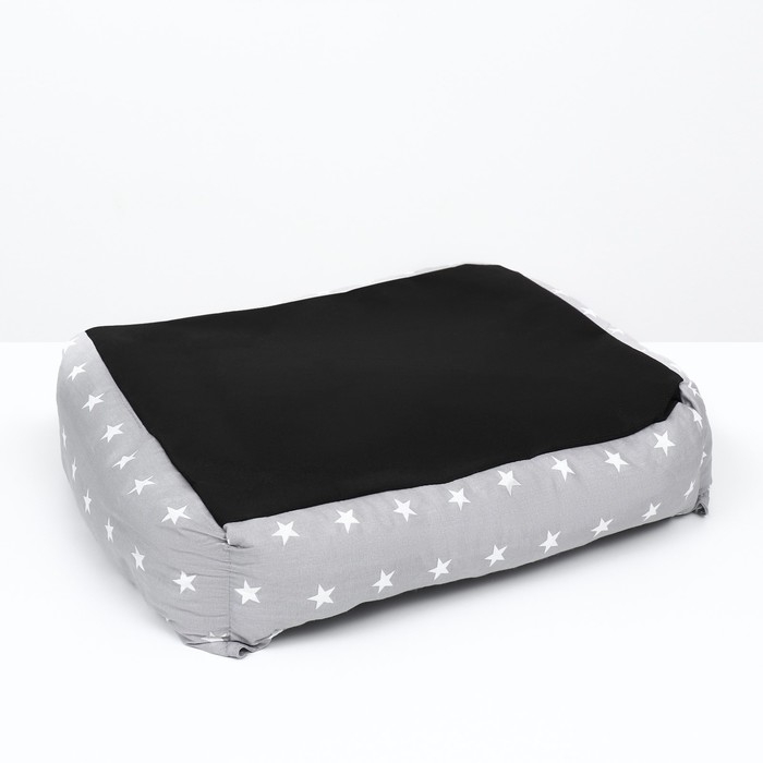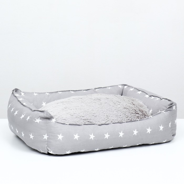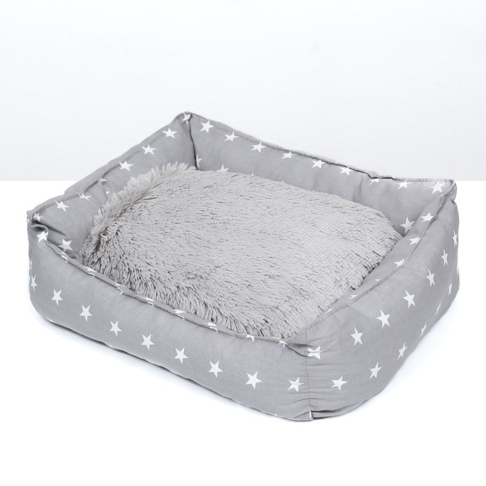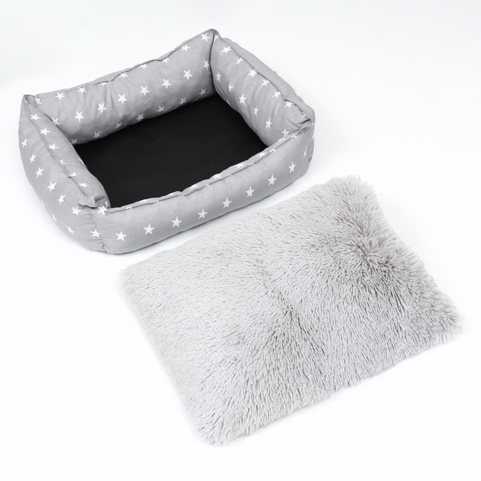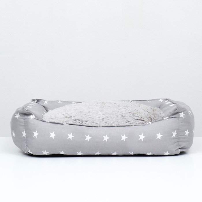 Лежанка "Пухлик", с мехом, 58 х 46 х 16 см, серая со звёздами
