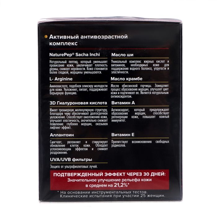 - NaturePep Sacha Inchi – натуральный пептид, который уменьшает провисание кожи, увеличивает плотность дермы, снижает неровности. Кожа становится более гладкой, морщины уменьшаются.