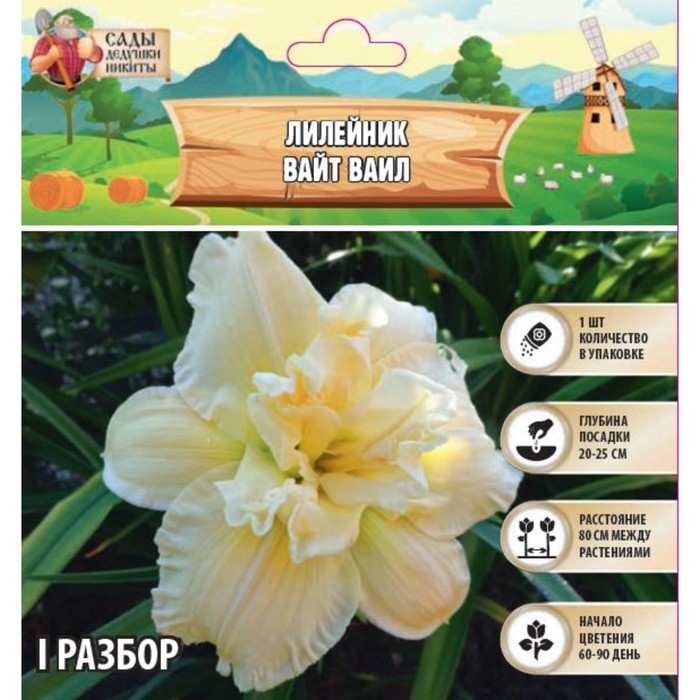 Лилейник махровый "White Vail" - относится к группе многолетников. Цветки крупные, воронкообразные, глубокошестираздельные с небольшой трубкой, очень похожи на цветки лилий. Они распускаются на длинных цветоносах. Сезон цветения у растения средний, повторно-цветущий. По типу вегетации растение спящее, по типу размножения — диплоид. У лилейника махровые цветы.