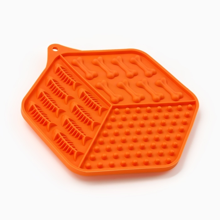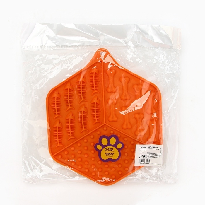 Лизательный коврик - миска для медленного кормления, оранжевый, 18,5 см х 16 см