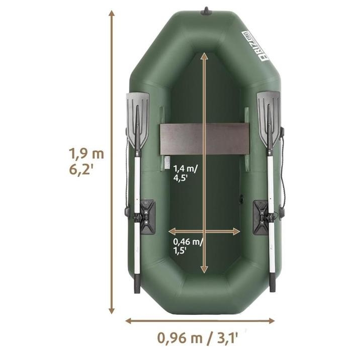Лодка «Бриз» 190 с вёслами, цвет зелёный