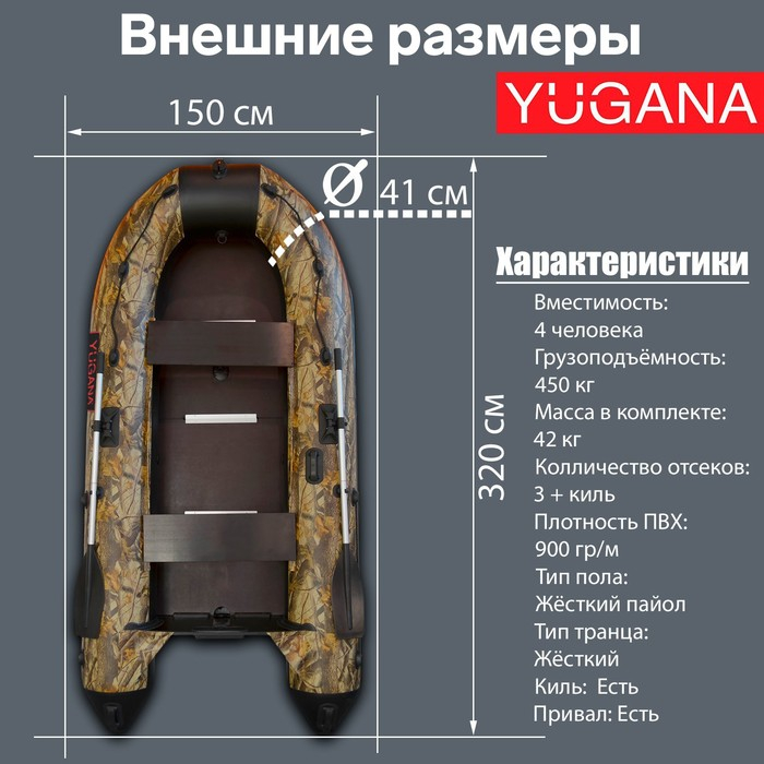 Лодка YUGANA 3200 СК Best, слань+киль, цвет кмф (лес-чёрный)