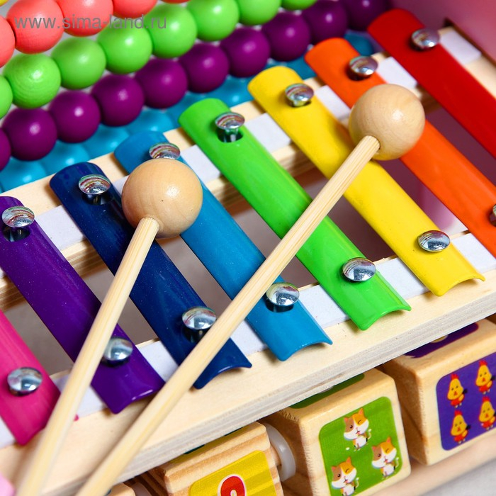 У логического центра множество поверхностей с разными играми. Есть металлофон, вращающиеся кубики и счёты. А ещё он выполнен в виде дружелюбного единорога, поэтому обязательно понравится ребёнку.