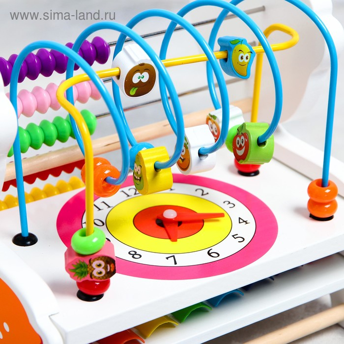 У логического центра множество поверхностей с разными играми. Есть металлофон, серпантинка, сортер, часики и счёты. А ещё он выполнен в виде дружелюбного оленёнка, поэтому обязательно понравится ребёнку.